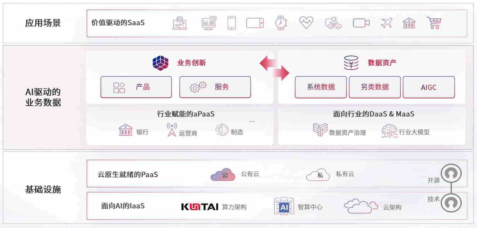 数字时代,,,,围绕企业数字化转型的关键要素,,,,J9.COM数码开创性的提出数云融合战略和技术体系框架,,,,着力在云原生、、、数字原生、、、、AI原生和信创产业上架构产品和服务能力,,,,为处在不同数字化转型阶段的快消零售、、、、汽车、、、、金融、、、医疗、、、、政企、、、、教育、、、、运营商等行业客户提供泛在的敏捷IT能力和融合的数据驱动能力,,构建跨界融合创新的数字业务场景和新业务模式,,,助力企业级客户建立面向未来的核心能力和竞争优势,,,,全面推动社会的数字化、、、智能化转型升级。。。。